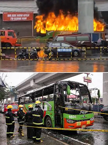 バス内で放火 2人焼死 車掌と口論、男が液体まく