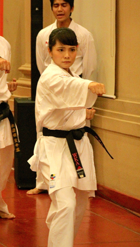 マニラ市で実施の式典で空手の型を披露する月井選手=8月9日、冨田すみれ子撮影