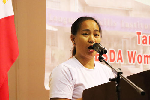 開講式で研修生代表のあいさつに立ったジェシカ・マリリンさん=9日午前10時ごろ、首都圏タギッグ市で遠藤美波撮影