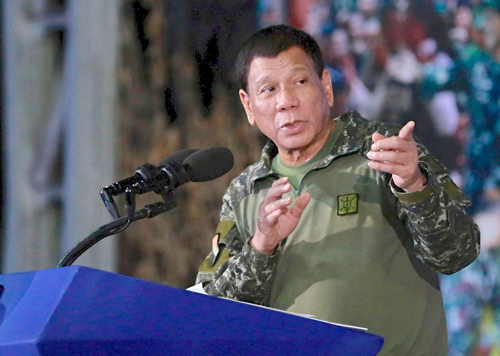 演説で麻薬政策について言及するドゥテルテ大統領=大統領府提供