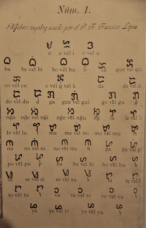ラテン文字(アルファベット)が普及する以前にフィリピンで使われていた文字バイバイン=フィリピン国立博物館所蔵