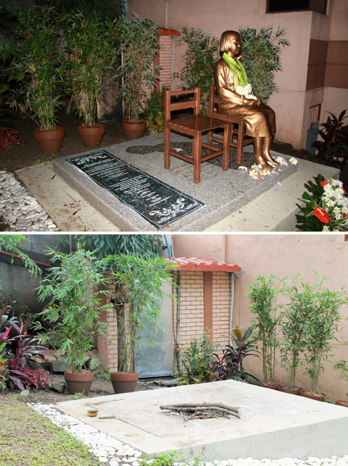 像は韓国の伝統衣装を着た少女が座る隣に空席があるが、市によると、比韓の友情を表現するために、比の伝統衣装フィリピニャーナを着た比人少女像が座る予定だったという。
