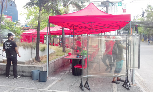 韓国系焼肉レストランの仮設店舗=26日午後1時ごろ、首都圏マカティ市で岡田薫撮影