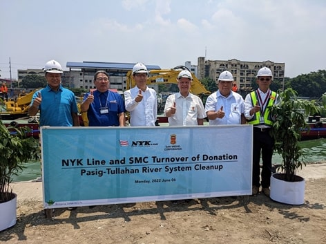 サンミゲルに機材供与 パシッグ川廃棄物対策事業