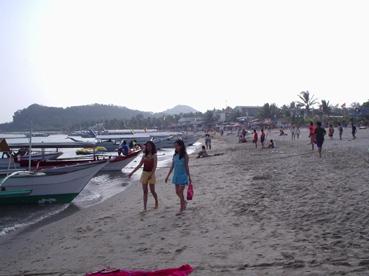 プエルトガレラにはホワイトビーチという人気リゾートもある。ここでロッジ経営の手伝いをしている峰岸広さん(60)は夕方の砂浜をのんびりと散歩するのが日課だ。嶺岸さんは「三、四月のピーク時には宿泊代が一人あたり千ペソとボラカイ島より高くなっている」と人気ぶりを教えてくれた。かつては家族連れで海水浴を楽しめる静かなビーチだったが、最近は学生らの利用が増え、夜にはディスコも出現、にぎやかになった。しかし、電気や水道といったインフラの整備が人気に追いついていないのが現状という。