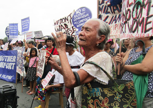 安倍晋三首相のフィリピン訪問に合わせ、元慰安婦支援団体「リラ・ピリピナ」など3団体は12日午前、首都圏パサイ市の在比日本大使館前で集会を開き、慰安婦...