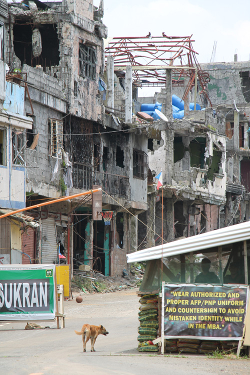 戦闘で破壊されたマラウィ市の旧戦闘地域=3月、ミンダナオ地方マラウィ市で冨田すみれ子撮影