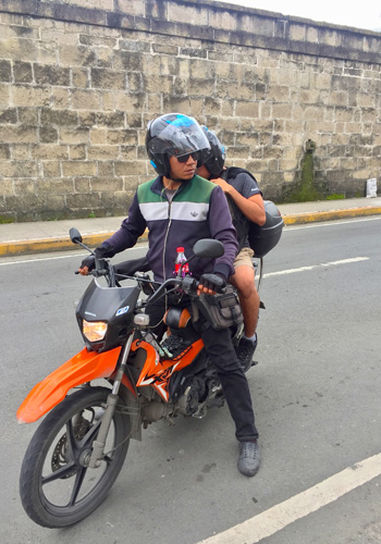 目的地の大学前で学生を降ろすアンカス運転手(資料写真)=首都圏マニラ市イントラムロスで冨田すみれ子撮影