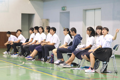 出番が終わり、くつろぐ様子の中学部の英語暗唱・スピーチコンテスト参加者たち=6日午後2時ごろ、首都圏タギッグ市のマニラ日本語学校で岡田薫撮影