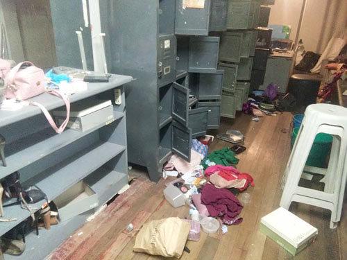 9日早朝、空き巣被害にあった首都圏マカティ市の日本人向けカラオケバーのスタッフルームの様子=同店提供