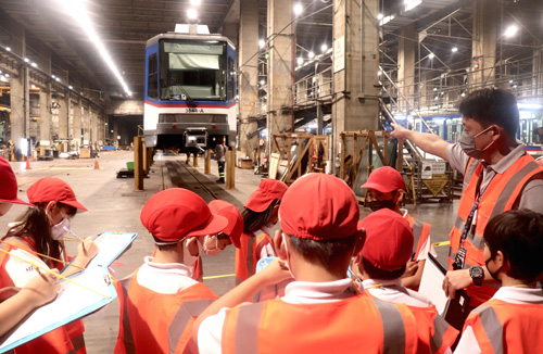 MJS4年生の児童や教員らが、首都圏鉄道(MRT)3号線の車庫を訪れた