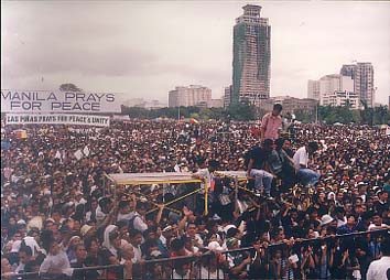 ≫エストラダ大統領を支持する100万人がきのう、ルソン島各地から集まる。(インクワイアラー)