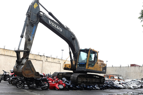 密輸オートバイ116台破壊 関税局、大統領立ち会いで