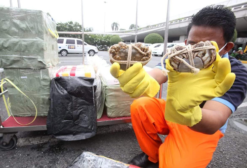 カニなど入った箱置き去り マニラ空港で中国人搭乗客