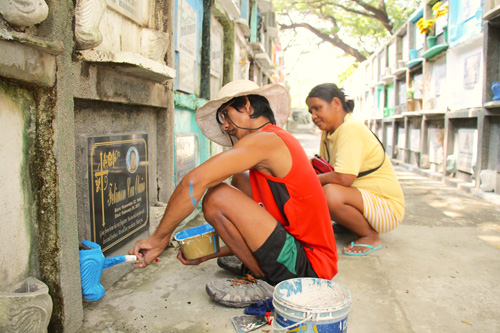 万聖節まで1週間、準備進む 墓のペンキ塗りや清掃