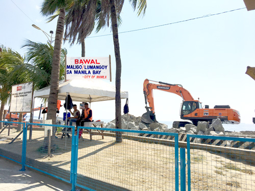 重機で堆積ごみを除去 マニラ湾浄化作戦