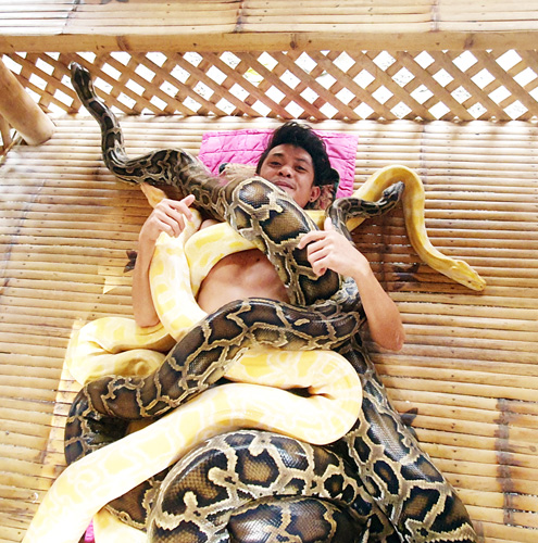 ニシキヘビのマッサージはいかが?