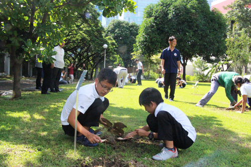 絶滅危機の木、子どもたちが植える マニラ日本人学校で植樹式