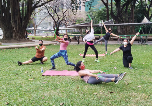 オンラインや公園で教室継続 フィットネス女性教師2人