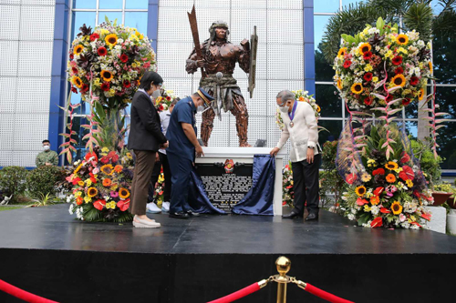 ラプラプ金属彫刻像を披露 国家警察 マクタン島の戦い500年記念