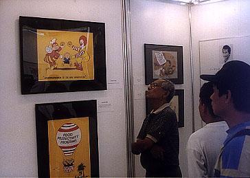 「漫画でみるアジアの食糧事情」をテーマに、フィリピン、日本など八カ国の漫画家九人の作品八十点を展示した「アジア風刺画展」(国際交流基金主催、在比日本...