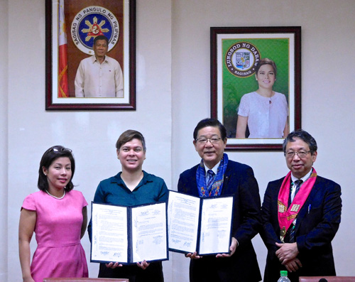 「戦略的環境パートナーシップ協定」を締結したダバオ、北九州両市長=北九州市提供