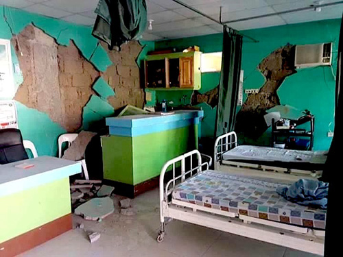 地震で壁が崩れ落ちた病院内=フィリピン赤十字提供