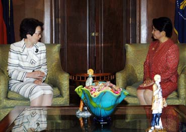 マラカニアン宮殿でアロヨ大統領と会談する川口首相補佐官(大統領府提供)