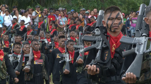 ミンダナオ地方の山奥で行われた比共産党の軍事部門、新人民軍の創設記念式典