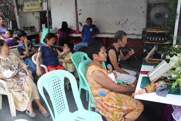 パッションを詠唱する比人女性=20日午後4時ごろ、首都圏マニラ市トンドで写す