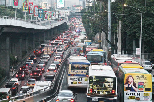 渋滞するエドサ通り(資料写真)=冨田すみれ子撮影