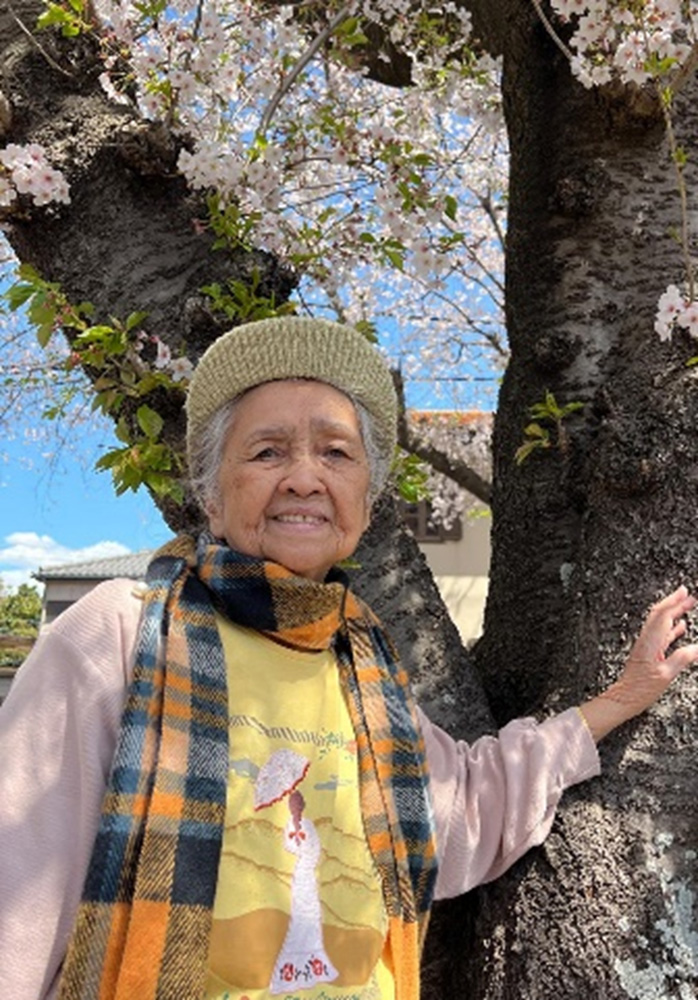 今月9日、船橋市内の公園で花見を楽しむ酒井ミチコさん