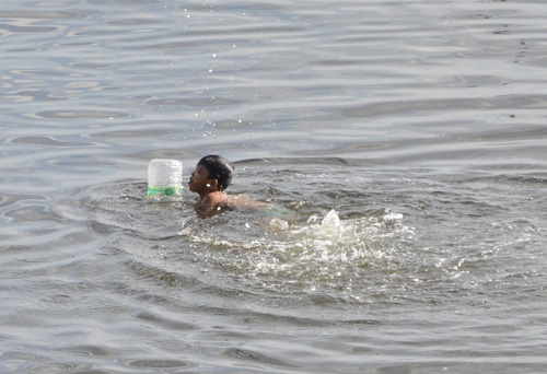 あすにも夏入り宣言 マニラ湾で泳ぐ市民も