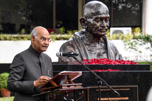 ガンジーの胸像 ミリアム大に インド大統領が除幕