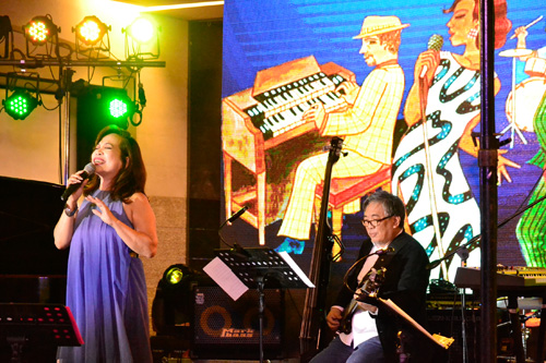 比日のジャズ奏者5人が共演し、観客約100人を魅了した=首都圏タギッグ市で写す