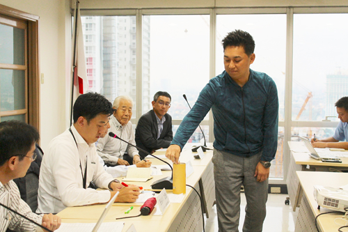 ソフトボール大会予選組み合わせのくじを引く監督会議参加者=23日午後5時半すぎ、首都圏マカティ市のマニラ日本人会で冨田すみれ子写す