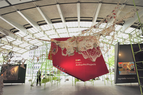 23日からアヤラ三角公園で開催されている「アートフェア・フィリピン2022」。圧巻のインスタレーション展示も=(同フェアのフェイスブックページより)