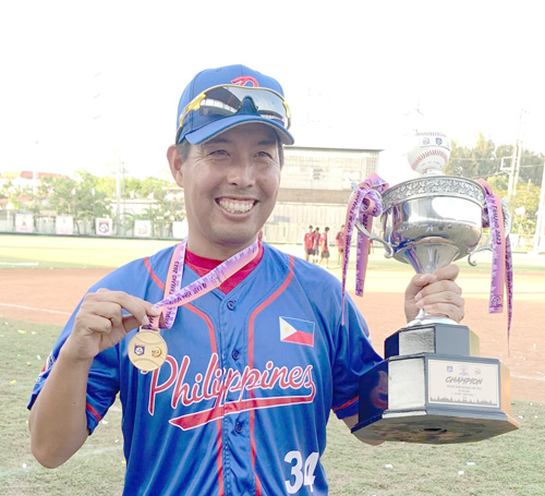 タイ開催の東アジア杯で優勝した野球比代表チームの片山圭二コーチ=本人提供