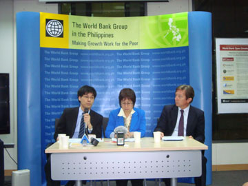 経済予測について発表する世銀担当者=首都圏パシッグ市で19日午前10時半ごろ写す