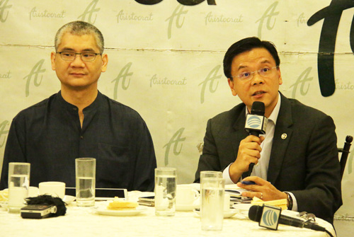 フォーラムで法案の利点を説明するランビノ次官補(右)=8日午前10時ごろ、首都圏マニラ市で森永亨撮影