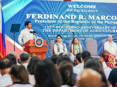 創立125周年を迎えた農務省の式典で演説するマルコス大統領=大統領府広報室フェイスブックより
