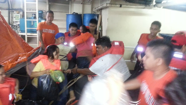 座礁船から乗客乗員を救出する沿岸警備隊=比沿岸警備隊提供