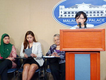 マラカニアン宮殿で記者会見するフェレール政府側交渉団長=27日午後1時10分すぎ写す