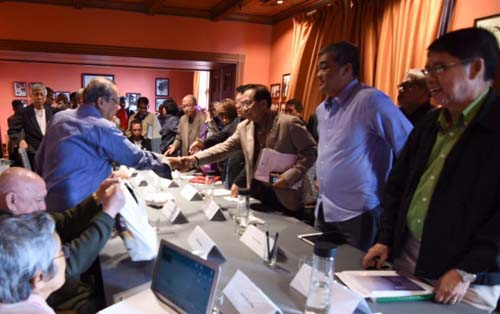 ノルウェーのオスロで現政権下初の和平交渉に入る両陣営和平交渉団=比政府提供