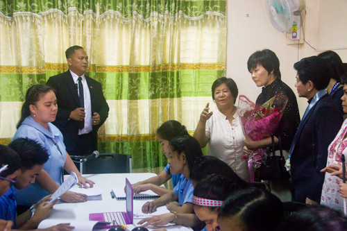 安倍晋三首相とともに来比した妻の昭恵さんは12日、首都圏パサイ市にあるフィリピン国立盲学校を訪れ、生徒たちと交流した。