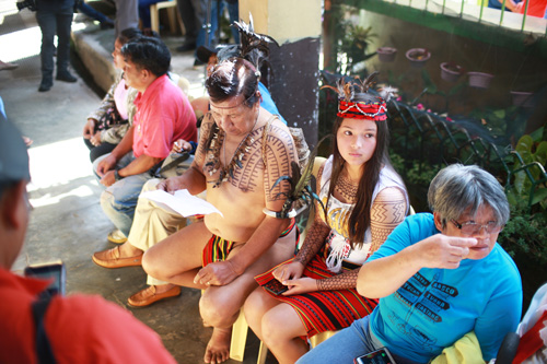 ルソン島北部バギオ市の投票所で13日、中間選挙投票の順番を待つ少数民族イゴロットの有権者(EPA=時事)