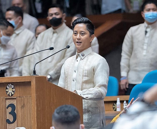 下院本会議場で初スピーチを行ったサンドロ・マルコス下院与党院内総務代行=25日午前、公式フェイスブックより