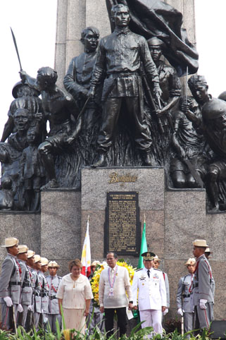 ボニファシオ記念碑に献花したアキノ大統領=30日午前8時ごろ、首都圏カロオカン市で写す