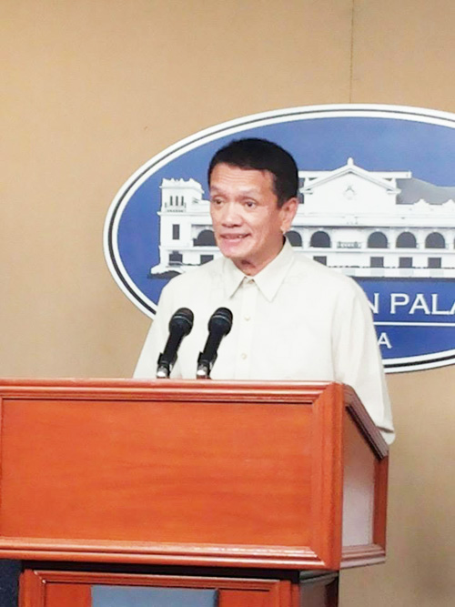 「滞納金はない」と主張するフィルヘルスのパディリア総裁=26日正午ごろ、マラカニアン宮殿で写す