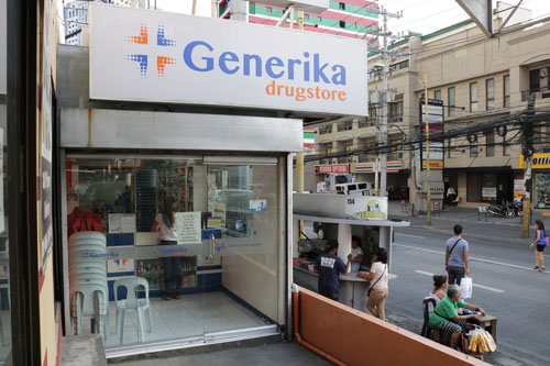 ジェネリック医薬品を販売する薬局=16日午後5時ごろ、首都圏マカティ市で森永亨撮影